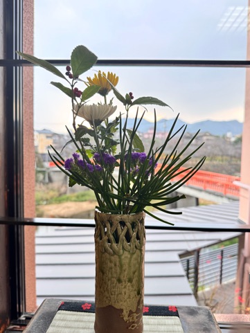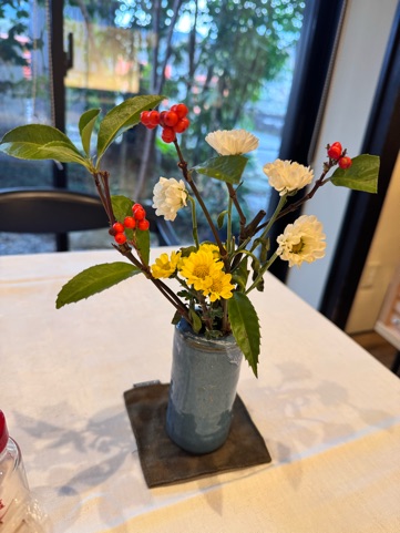 テーブルにはお花がお出迎え