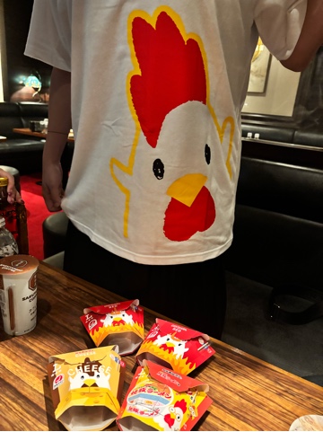 からあげクンとからあげクンTシャツ着てるかおりちゃん✨