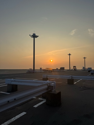 飛行機乗る前の夕日がめちゃめちゃ綺麗だった🌇
