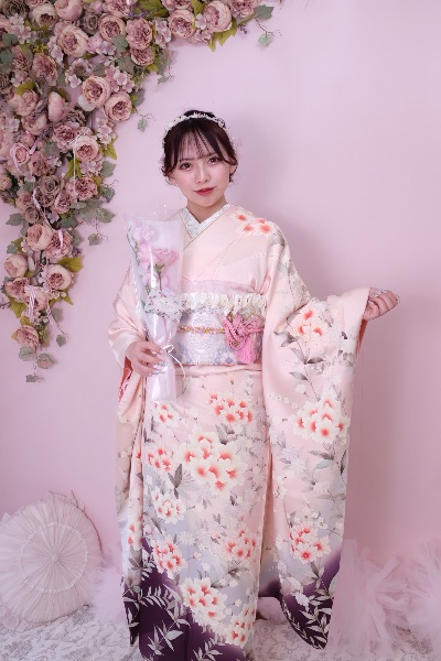 成人式終わって帰ってきて脱ぐ前に撮ったからちょっと髪の毛崩れてるかも😭