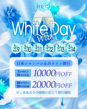 今日も皆様お疲れ様です❣️ 今週もよろしくお願いします 今週はホワイトデーイベントがあります~~ シャンパン、ワイン、待ってます~ 一緒に酔いましょ~❣️ ![]() いつもよりお安くなるのでぜひ~ おしまいっ | |