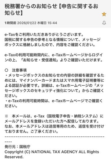 税務署からのお知らせが届いてて