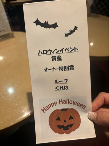 12時回る前にブログ書かなきゃ ![]() ハロウィンのコスプレでオーナー賞を あかねと一緒に貰った ☺️🤍 うれしい~~^^ 今更だったからいきなり呼ばれて何かと 思った🤣 あかねとうれしいね~て話してた笑 色違いでコスプレ着てよかった😊 ではっ! | |