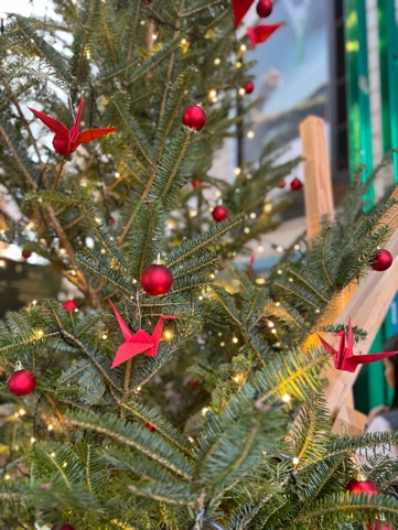 折り鶴と木が融合してて