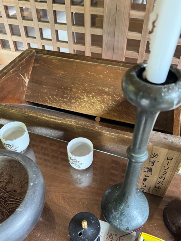 ちょっと上にお賽銭入れるとこあって