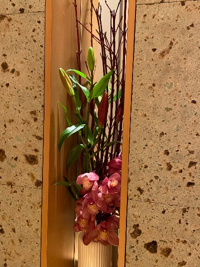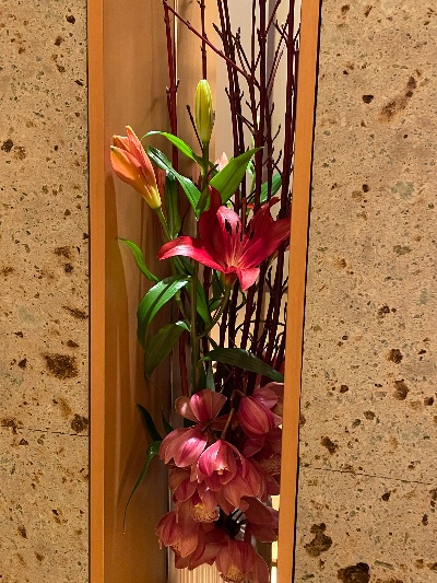| 濃いピンクの洋蘭が華やかなアレンジ✨ 珊瑚水木で和の季節感を演出していて 和モダン生け好きすぎる〜🌷🌷 ![]() | |