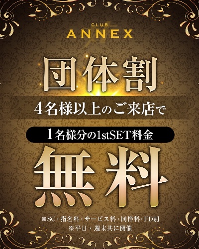 ![]() 今月は団体割のキャンペーンを 行っています😊 飲み会等あった際には ぜひアネックスへ飲みにきてください🥰 | |