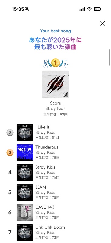 ![]() 2025年に最も聴いた楽曲 全部スキズ🤣♥️ ハーまたライブ行きたい🥺💛💛 | |