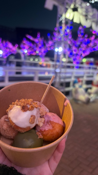 | こんばんは♡ ʕ•ﻌ•ʔฅ´- ✨ まなです🌸 福岡タワー行った時にクリスマスマーケットみたいな屋台があって、美味しそうなドーナツがあったので食べちゃいました😂 カチカチだった🥺 ![]() | |