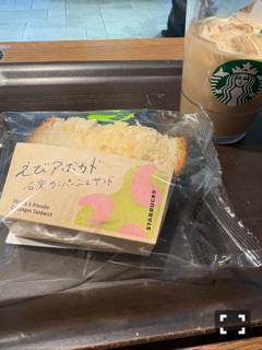お腹ぺこぺこだったから、迷わずエビアボカドのサンドイッチにした🥪