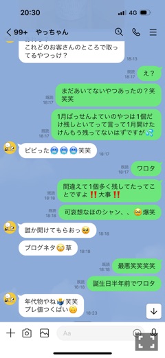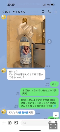 | この前店長から来たLINE ビビった笑 ってほののセリフ 誕生日のオリシャンが手違いで1本残ってた、、、 ダレカタスケテー | |