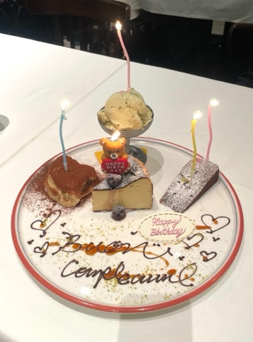 お仕事お疲れ様です あいかです 昨日は 皆で姪っ子JK のbirthday party🎂✨💖 誕生日プレート🎂 に 可愛さ追加したくて 🧸ちゃんロウソクと ウネウネキャンドル🕯️ 事前に用意したの  ロウソク🕯️は 100均 こんなに可愛いのに 100円  ありがたき100均様 めっちゃ可愛いプレートに なってて 一安心  お店のスタッフさんが イタリア🇮🇹語で 歌いながら プレート持ってきてくれて お客様もスタッフさんも 皆で大合唱 店内大賑わい 姪っ子もご満悦👸💓 誕生日大成功   に終わりましたとさ  18才になったJK 一生懸命努力できる 心の優しい 人から愛されキャラの 可愛い姫 いつも皆の人気者 18才も全力で楽しんでね   CLUB ROYAL  別邸 ー粋- SUI