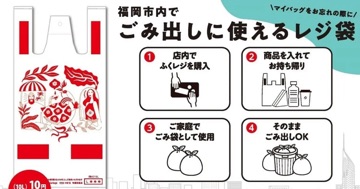 岡市は11月29日(金)から 市内のコンビニエンスストアなどで レジ袋の代わりに使える 小さいサイズの市指定ごみ袋 「ふくレジ」の 販売をスタートさせました。 ふくレジは10リットルサイズ (税込み1枚10円) と15リットルサイズ (税込み1枚15円)。