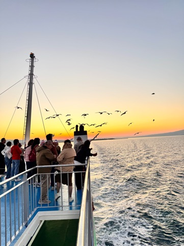 カモメが寄ってくるので有名 何回か乗った事あるけど 相変わらず すごい数のカモメが 飛んでくる ![]() 外人さん達も 大喜び ちくわの争奪戦 ![]() こっち見とるし😂 この時期はまだ カモメ用のパンが 売ってなくて 竹輪ちぎって投げたら 上手いことキャッチして 食べてた 😅 何でも食べるんやね じゅんみたい 笑 | |