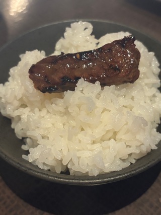 | やっぱり焼肉といえば白ごはんでしょ。 お肉乗せて撮ってみましたが。。 他には冷麺とかも食べたヨォ。 | |