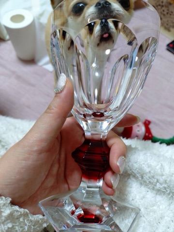 ムギの顔が二重にグラスに映ってる😆