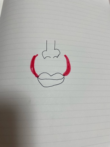 赤ワインの牙が鼻まで届きそうに