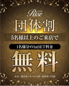 今月は団体割引が出来ます ![]() ![]() 是非RISEに遊びに来て下さい ![]() お得ですよ〜 ![]() ![]() | |