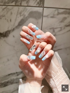 ネイルかわいい!! 新しくしたんです^^ 水色嫌いな人いる?? | |