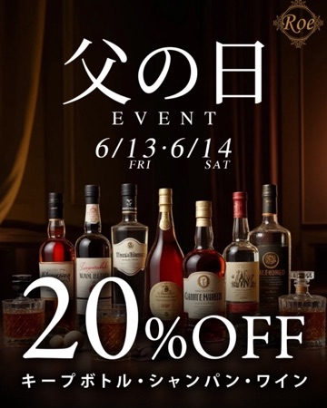 こんばんは♪れいなです ![]() 来週は何と父の日イベントです ![]() ボトルが20%オフ ![]() 年に一度のお得な日なのでこの機会に 利用してみてください ![]() ![]() | |