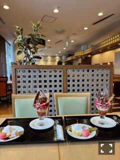 | サンパレスの1回のレストランにある あまおうのパフェ食べた🍓💞 パフェ食べ放題もあったんだけど、 プレミアムパフェにした🎶 めちゃくちゃ美味しかったー!みてー! | |