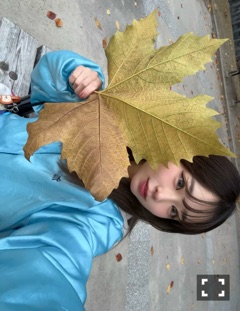 こんばんは🌙!ゆなです.︎︎⟡* 見て~~~~~~!!! 顔の2倍くらいある落葉🍂発見!! さすがにこれははしゃいだ、笑 秋の夕方の公園気持ちよかった~~🌀 | |