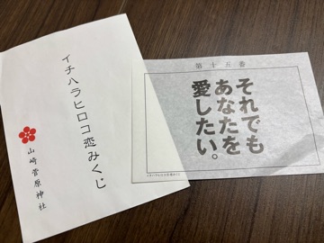職場の方に熊本土産でお願いしてた 恋みくじ🫶🏻🫶🏻 ![]() むむむ。かっこいい。 けど 誰が誰をなんだろうか。わら 七夕の短冊にくくりつけました。 | |